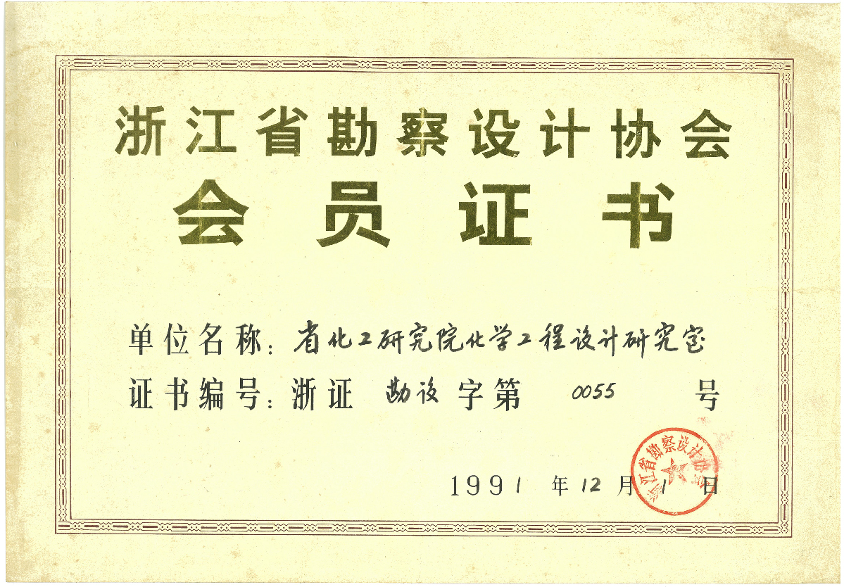 浙江省勘察设计协会会员证书(199112)