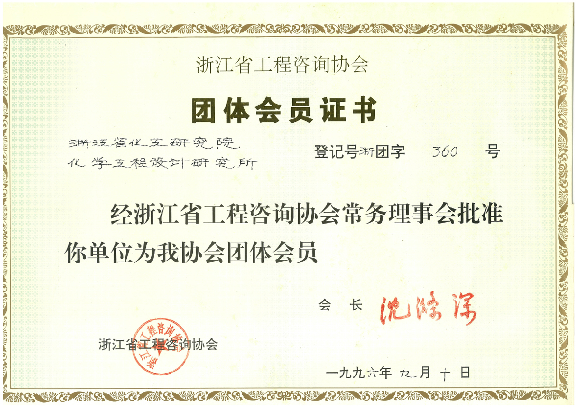 浙江省工程咨询协会会员证书(19960910)