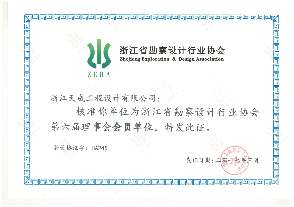 HA245 浙江省勘察设计行业协会会员证书(2017)